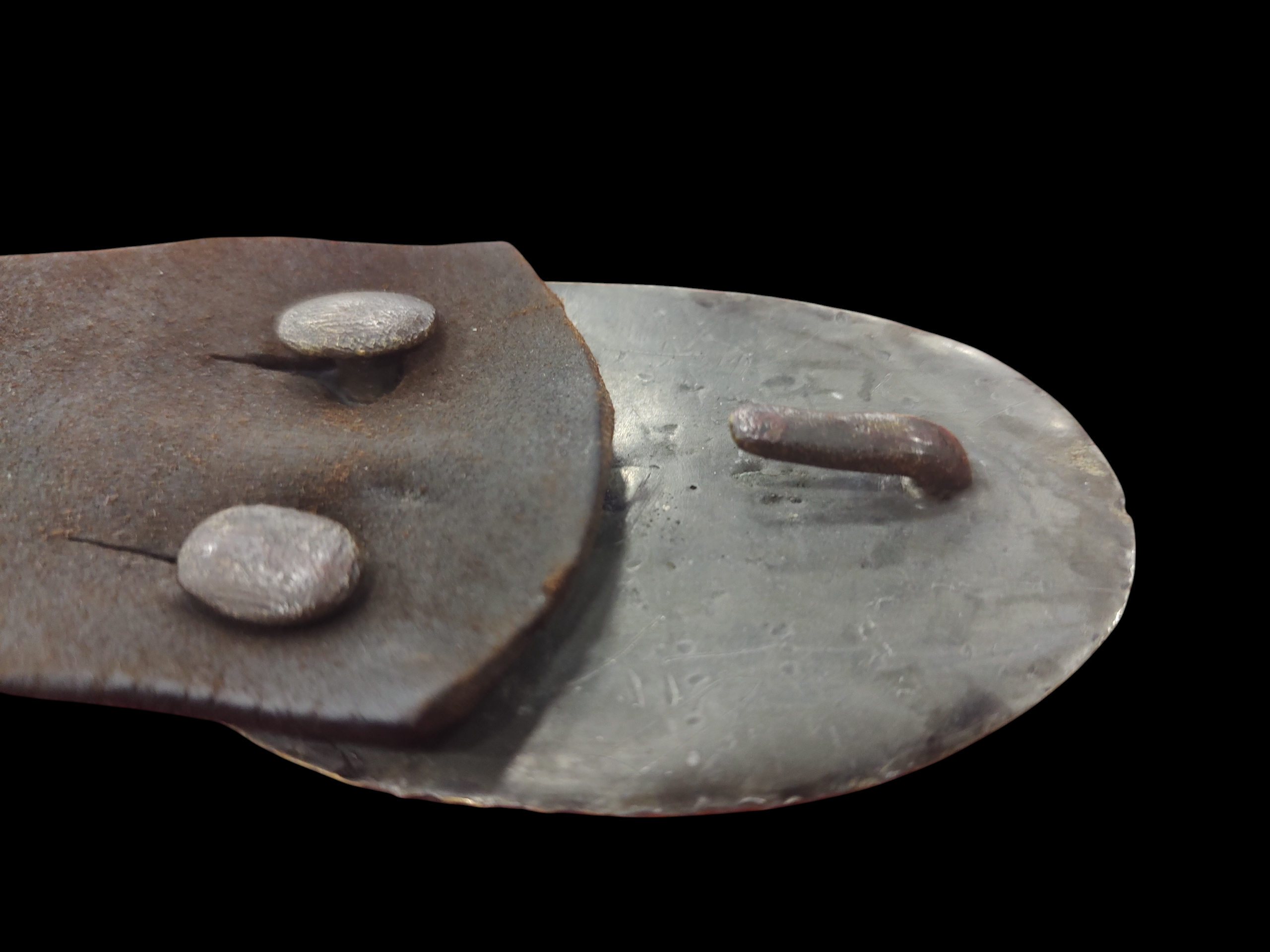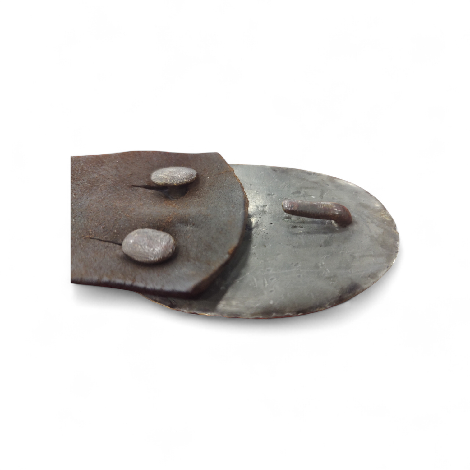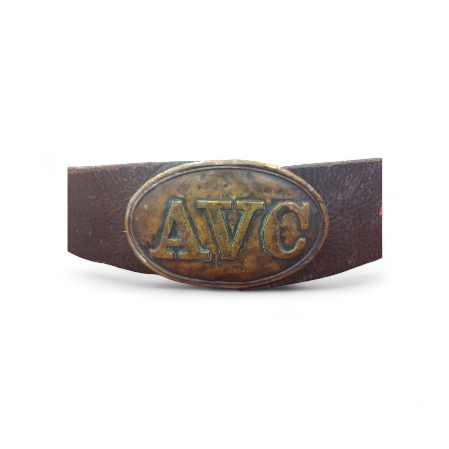 Alabama roughly contributed 120,000 Confederate troops, forming units often composed of local men of Alabama. Featured is a very scarce non-excavated AVC buckle, surviving in an excellent state of original preservation, on authentic Confederate leather belt. This rare confederate plate shows the character of a Confederate plate, that has experienced campaign. Belt has been repurposed from a confederate cartridge box “over the shoulder strap” as is indicative, from “breast plate” slit area on belt. Exceptional condition.