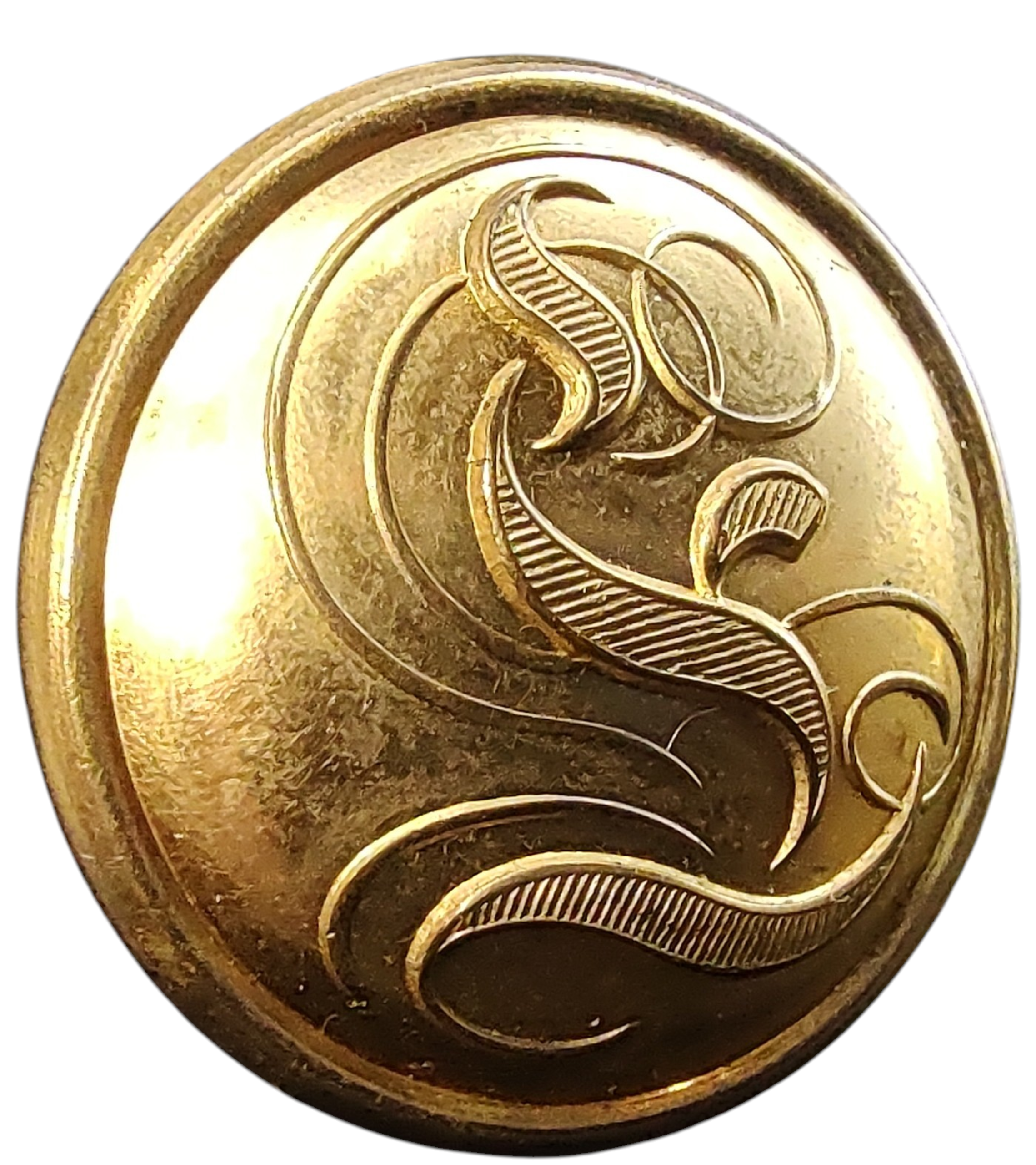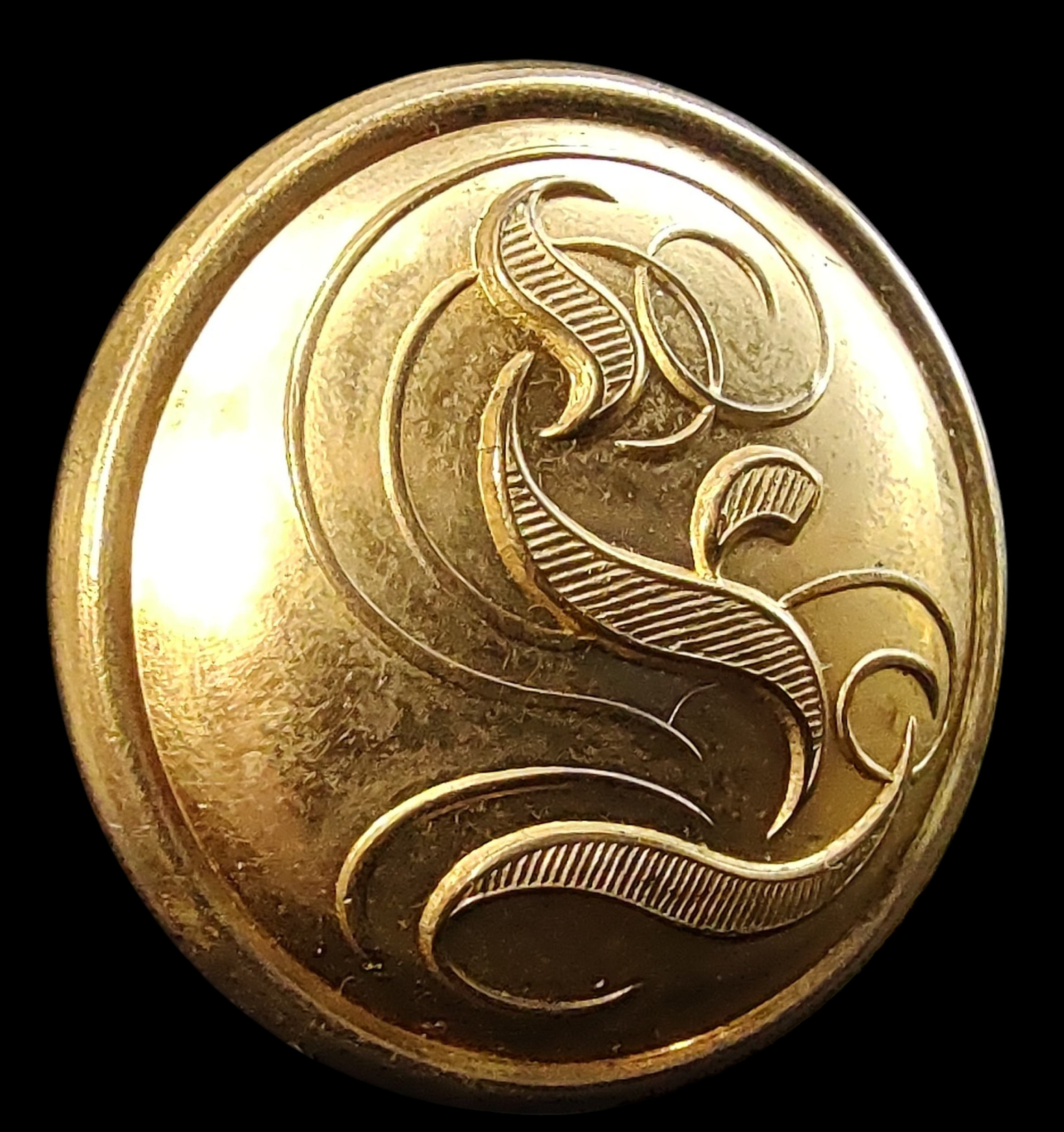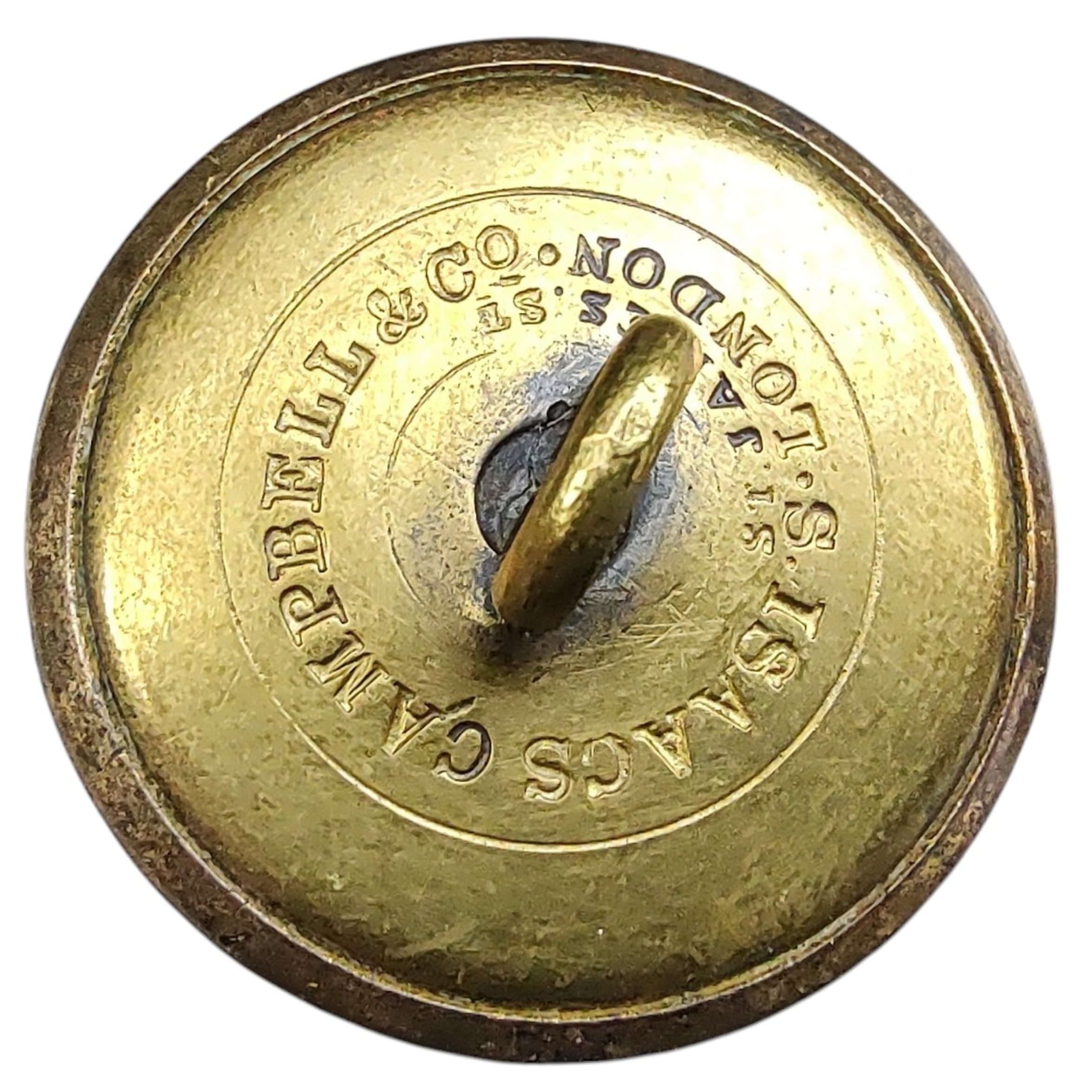 British manufactured for the Confederacy, Confederate Engineers.  Identification by Tice CSE 212-A1, Alberts CS 152. Convex, two-piece.  This button has always been popular with collectors and examples have commanded substantial prices, due to their size and unquestionable beauty. Cuff size version is rarer. Front has a lined Manuscript “E” on a plain field. 26mm. Backmark “S. ISAACS CAMPBELL, & CO. / LOMDON / ST. JAMES ST,”