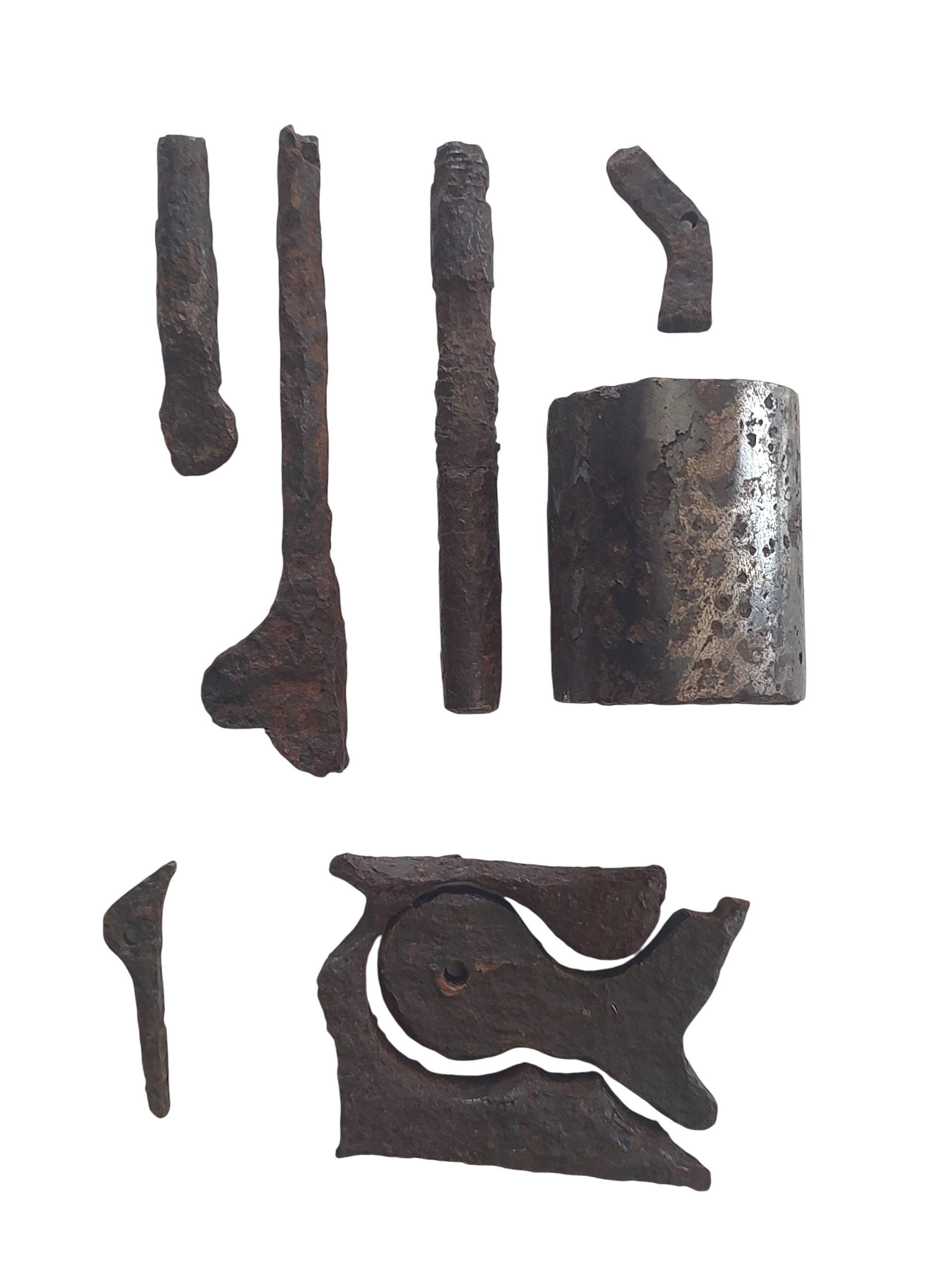 On Aug. 5th, the Macon TELEGRAPH announced that the “Colt’s Navy Repeater” made at the machine shops of Messers. Griswold & Gunnison at Griswoldville, had passed the Inspection of the Confederate Superintendent of Armories at Macon, and that a contract had been made for as many as could be produced. This six-shot .36 caliber revolver was manufactured under contract to the Confederate government. It is a brass framed copy of the Colt 1851 Navy revolver. Connecticut Yankee Samuel Griswold set up a cotton gin factory in Georgia in 1830. In 1862, Griswold produced pikes for volunteers from the state of Georgia. The factory soon began producing revolvers for the Confederacy. No other Confederate factory produced more revolvers than Griswold & Gunnison. Griswoldville was the first town burned by Sherman’s troops on his march to the sea. Featured “For Sale” are authentic iron Griswold & Gunnison revolver parts excavated from the actual location of the “burned” Griswoldville factory. Parts include: Cylinder, Cylinder Arbor Pin, Loading Lever and “cut from stock iron” intended left side hammer. A great addition for the Confederate Revolver Collector.