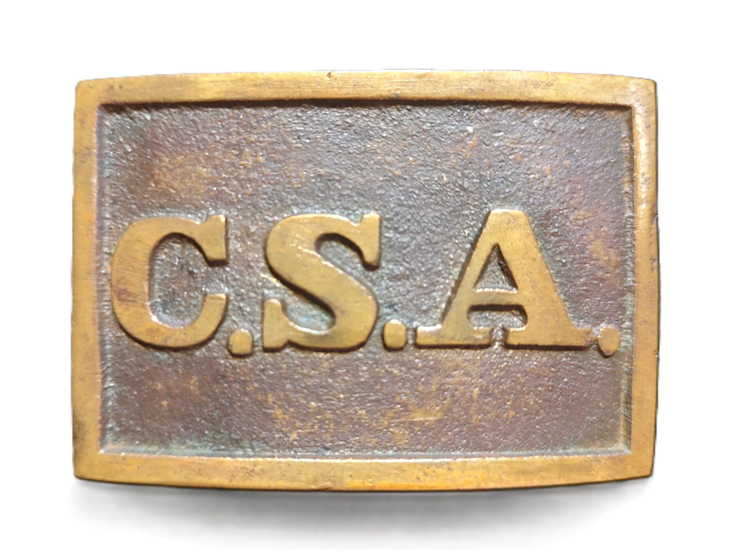 Exceptional condition non-excavated “Atlanta Arsenal” CSA Rectangle waist belt plate. This exquisite condition CSA rectangle waist belt plate is in a perfect state of original preservation. Typical Atlanta Arsenal style CSA plate, more than likely issued to the Army of Tennessee. Manufactured for the Confederacy in Georgia 1861-1865. Dimensions: 48 X 70. Provenance: Private Southern Collection…